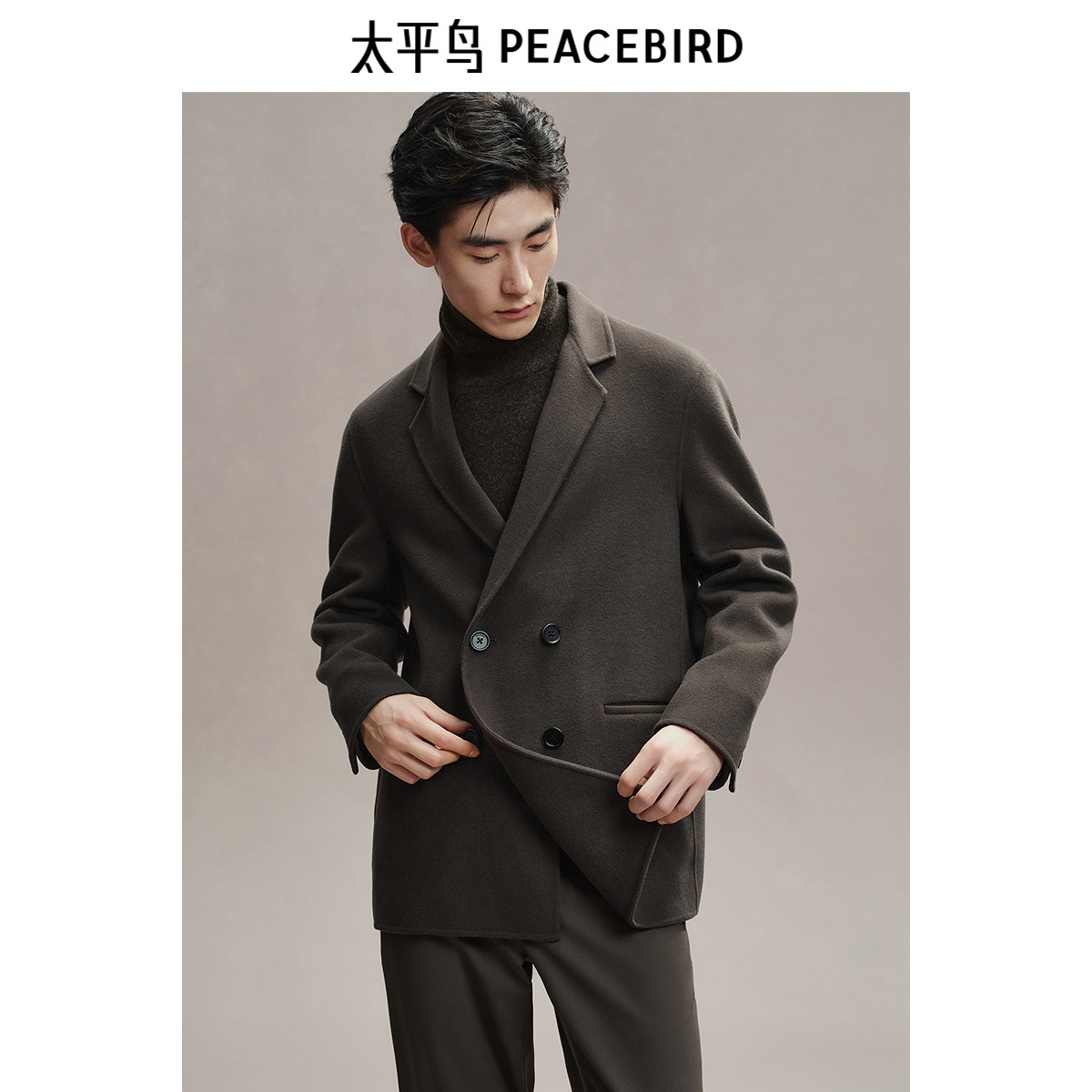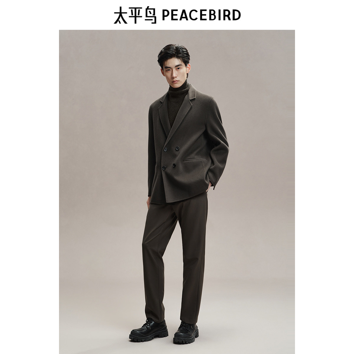 太平鸟男装 毛呢外套男年冬季新款双排扣西装羊毛短款大衣男