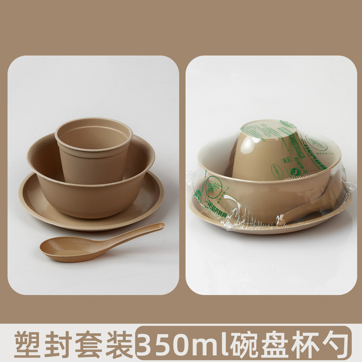 一次性餐具套装稻壳餐碗家用饭碗露营户外三件套四件套商用烧烤