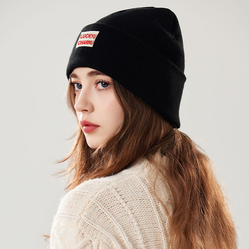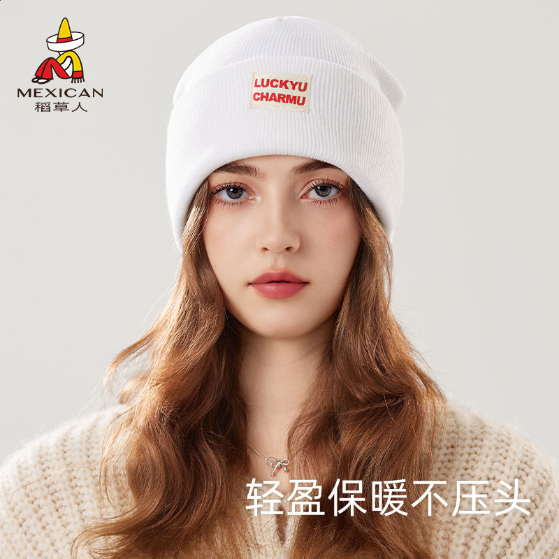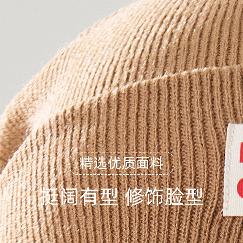 稻草人针织帽子女秋冬新款纯棉保暖抗皱韩系纯色百搭堆堆帽大头围