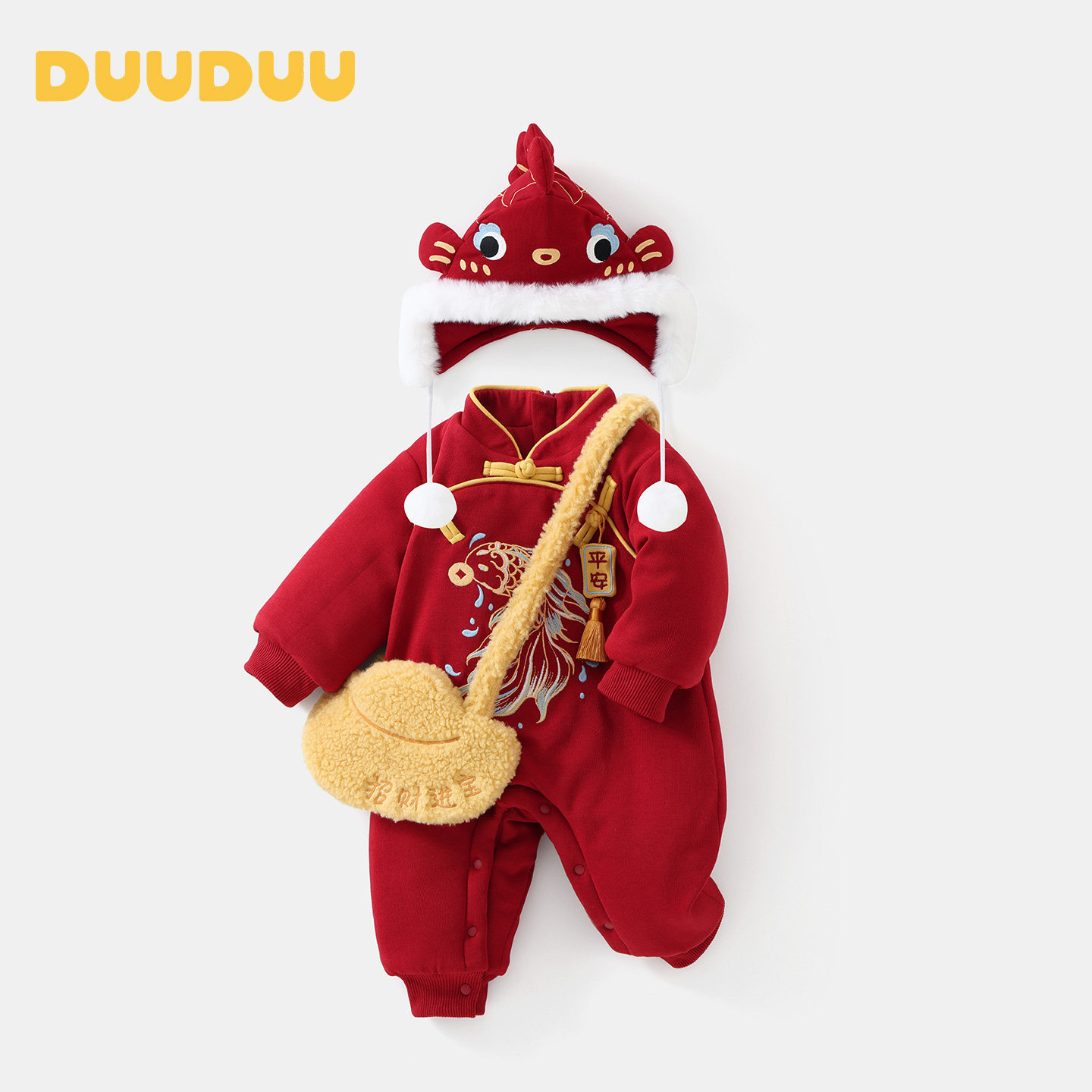 DUUDUU婴儿衣服冬季连体衣宝宝红色拜年新年装满月服过年喜庆冬装