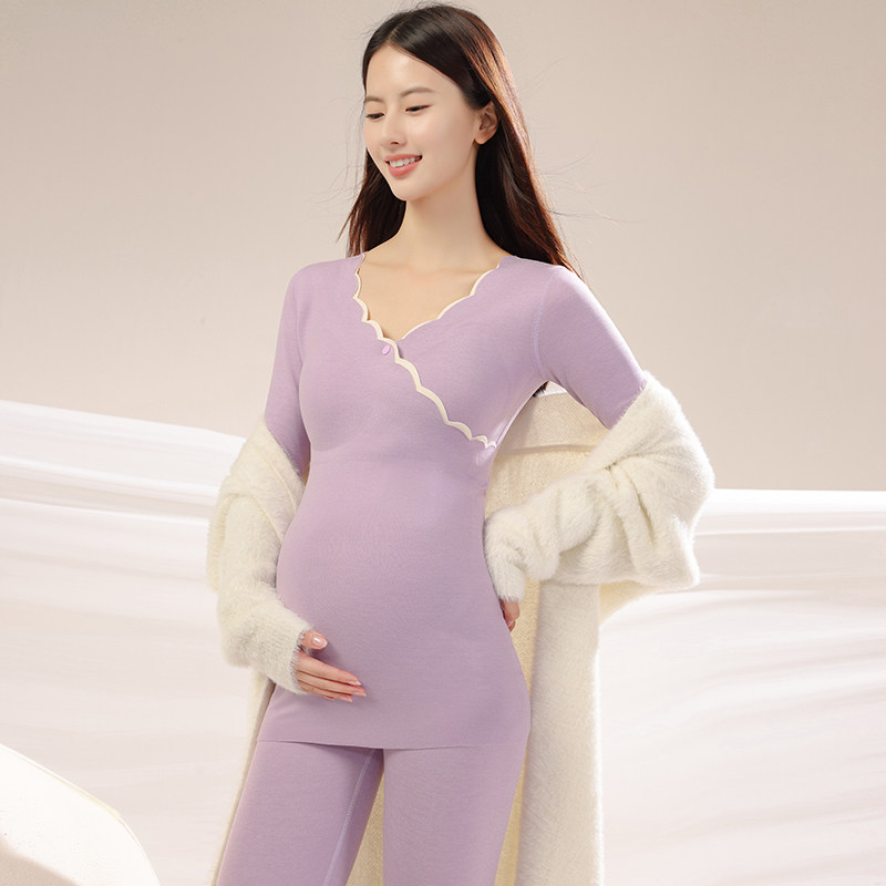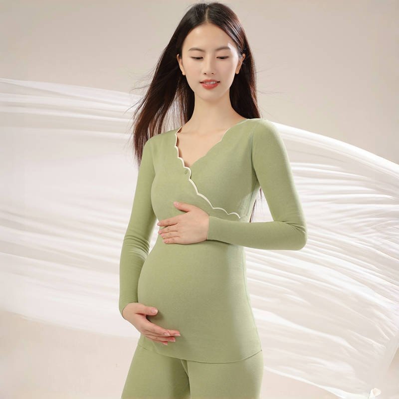 婧麒孕妇秋衣秋裤套装保暖内衣孕期打底产后哺乳喂奶大码月子服冬