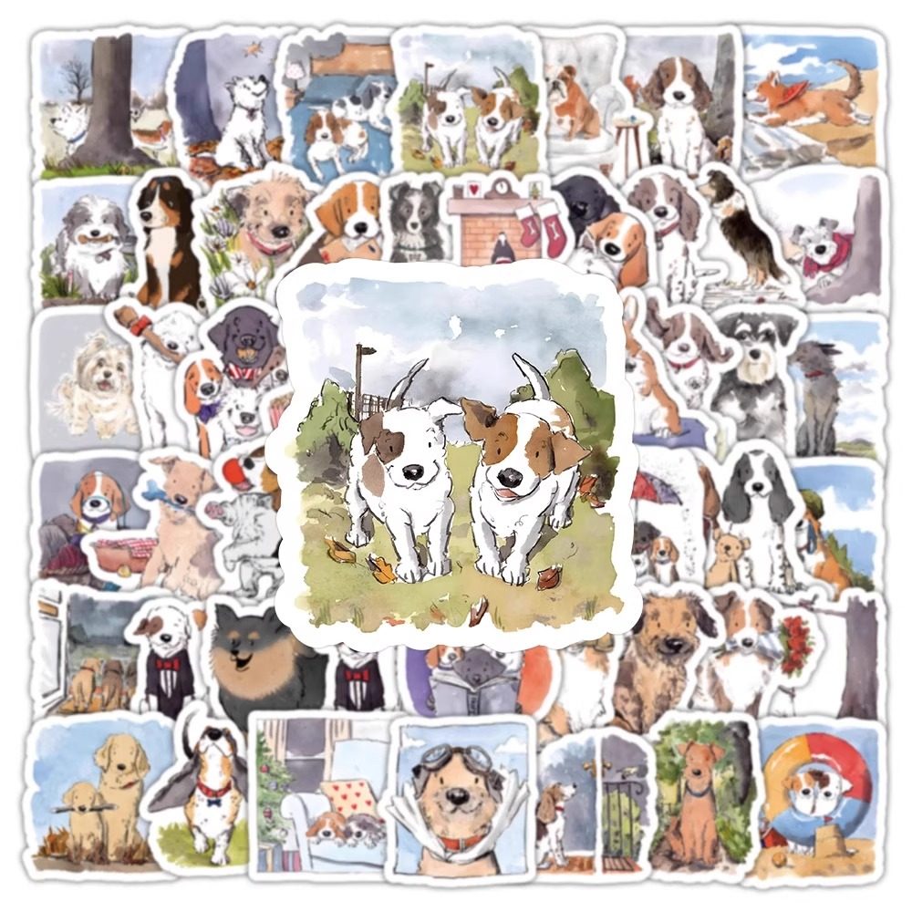快乐修勾贴纸小狗狗可爱贴画行李箱笔记本手账素材装饰图案防水贴