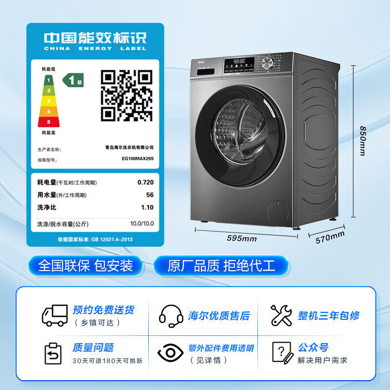 海尔洗衣机洗烘干一体机家用全自动10公斤超薄嵌入大容量变频滚筒