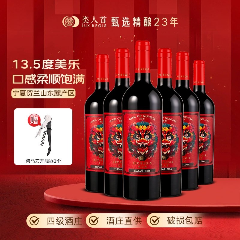 类人首 宁夏红酒贺兰山东麓龙腾美乐橡木桶干红葡萄酒750ml*6支装