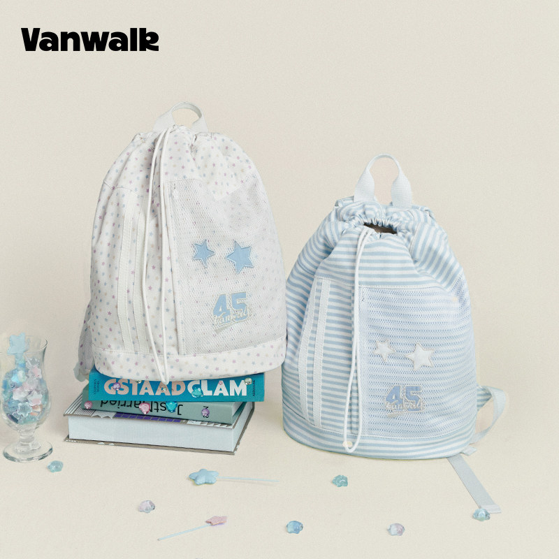 VANWALK Fruit Power新款运动旅行束口袋双肩包女通勤休闲帆布包