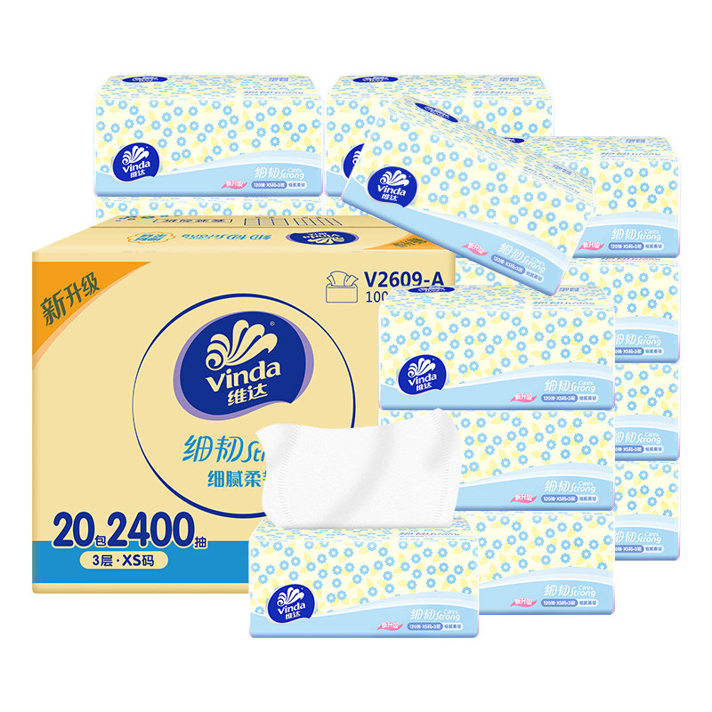 维达细韧抽纸120抽20包整箱擦手卫生纸巾家用大包装餐巾纸面巾纸