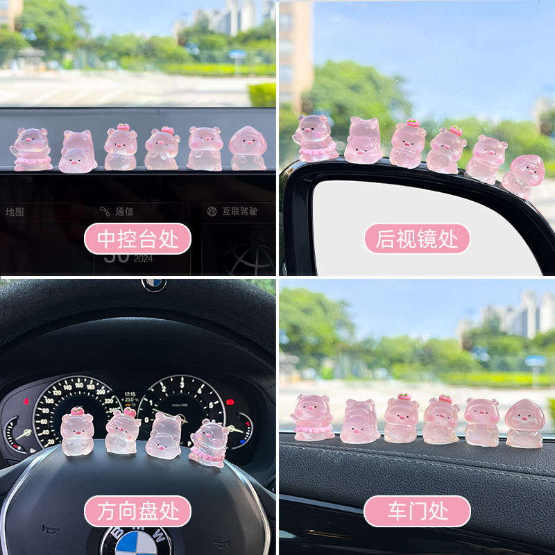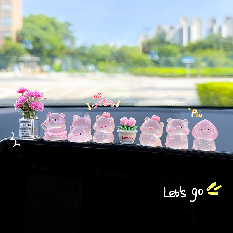 可爱小猪车载摆件中控台屏幕装饰品汽车内饰品治愈系摆件电动配饰