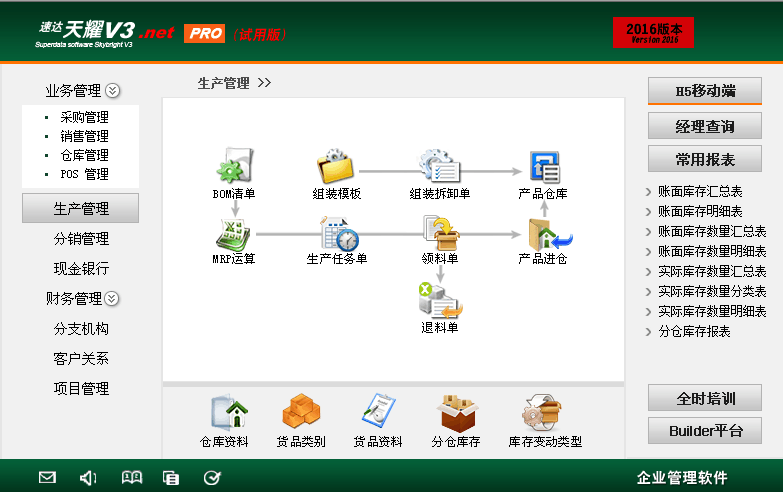 速达天耀V3.net工业版进销存财务软件生产销售分销报表项目永久用