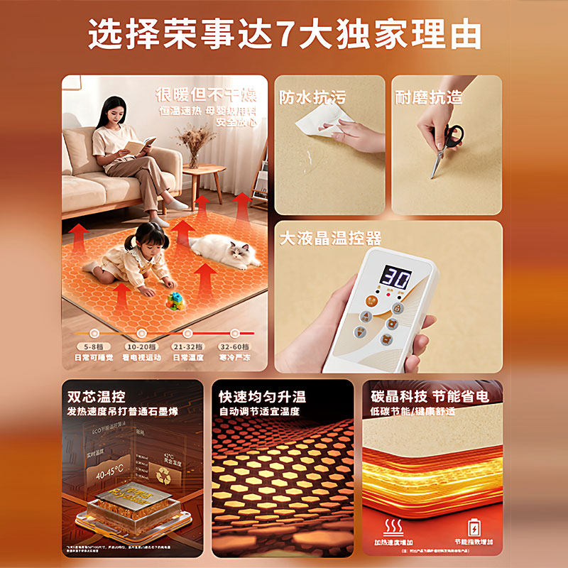 荣事达地暖垫加热地垫碳晶爬爬垫地热垫儿童电热地毯冬季客厅室内