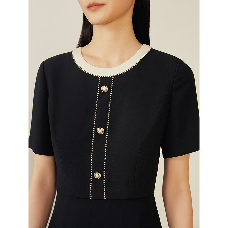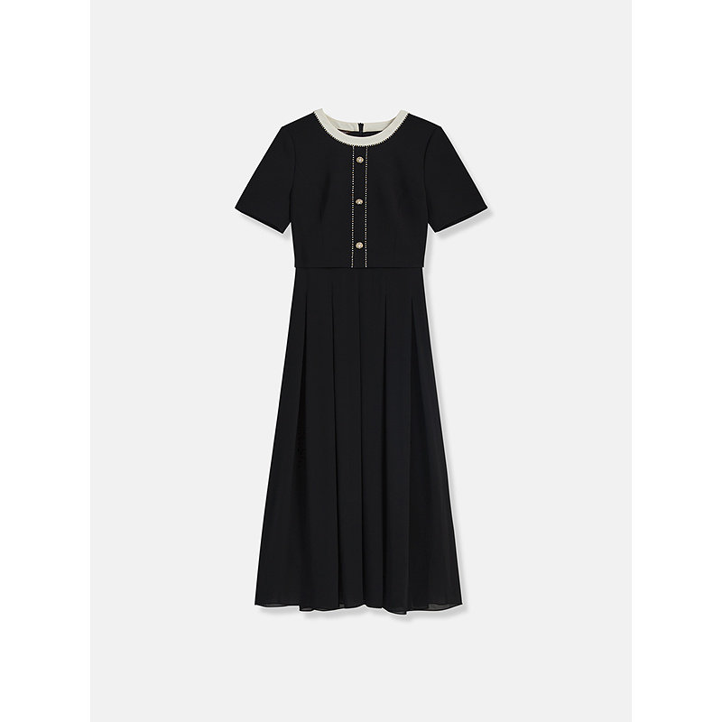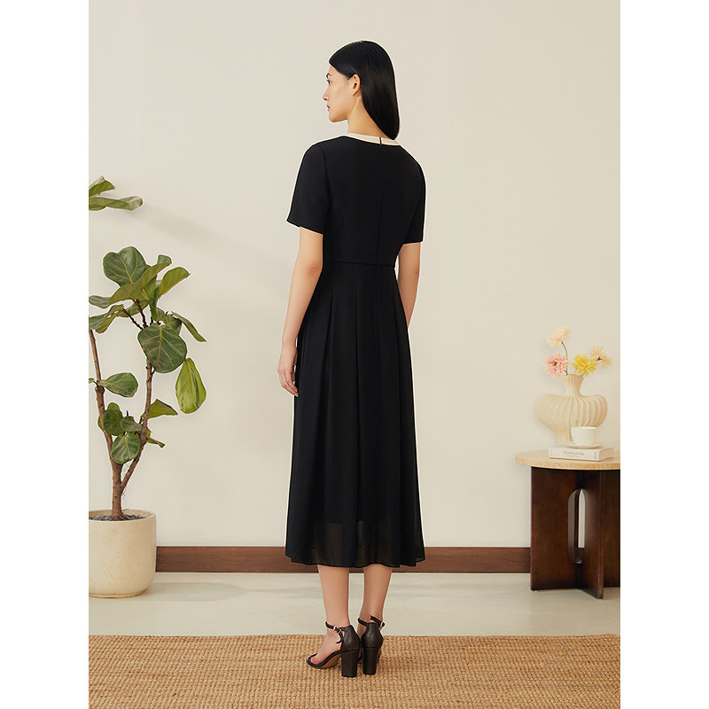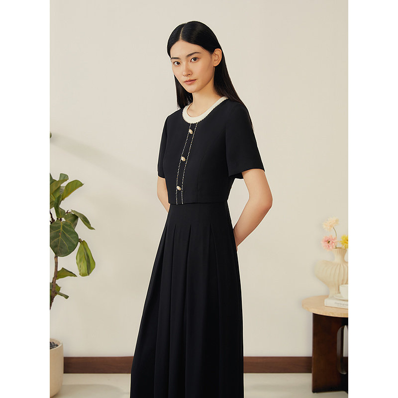 YINER音儿专选2025春季新款法式高光小黑裙假两件收腰雪纺连衣裙