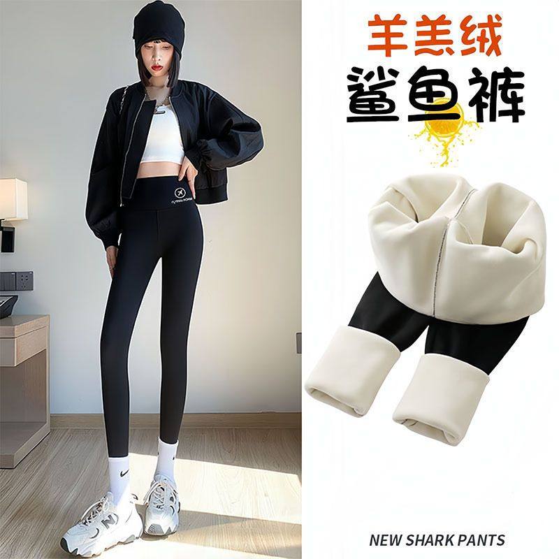 杨幂同款SIINSIIN鲨鱼裤女外穿2025新款冬季瑜伽裤加绒加厚打底裤