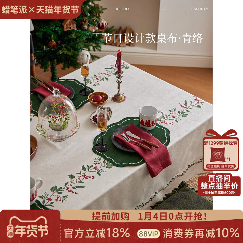 蜡笔派青络桌布简约现代防水餐桌盖布轻奢新年节日氛围2025新款