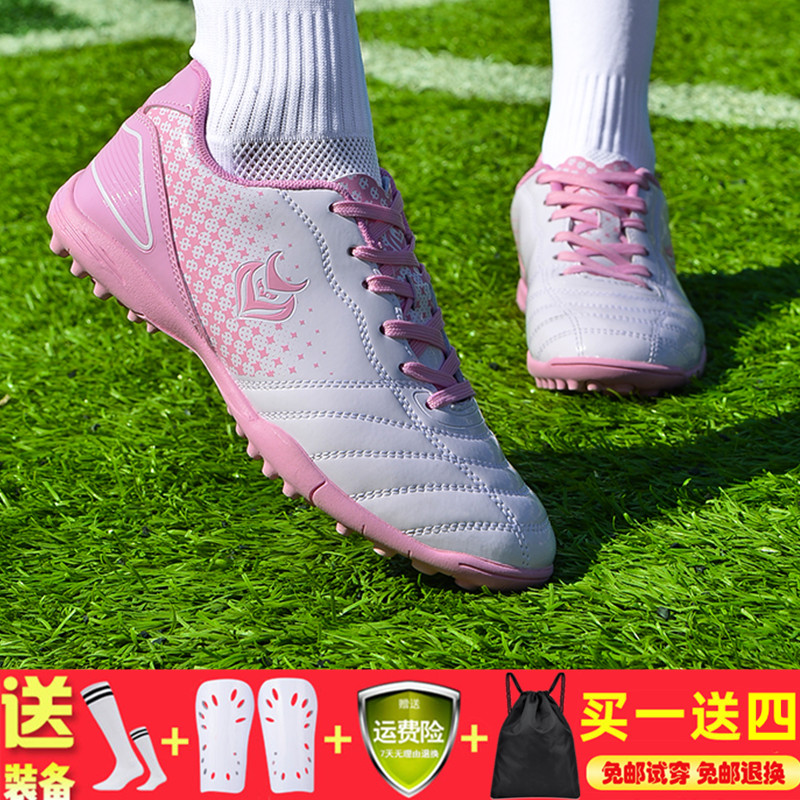 专业儿童足球鞋碎钉TF中小学生女童训练鞋粉色女孩钉鞋女短钉室内