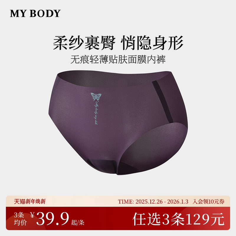 3件129|商场同款MYBODY无痕内裤棉质底裆轻薄贴肤面膜提臀平角裤