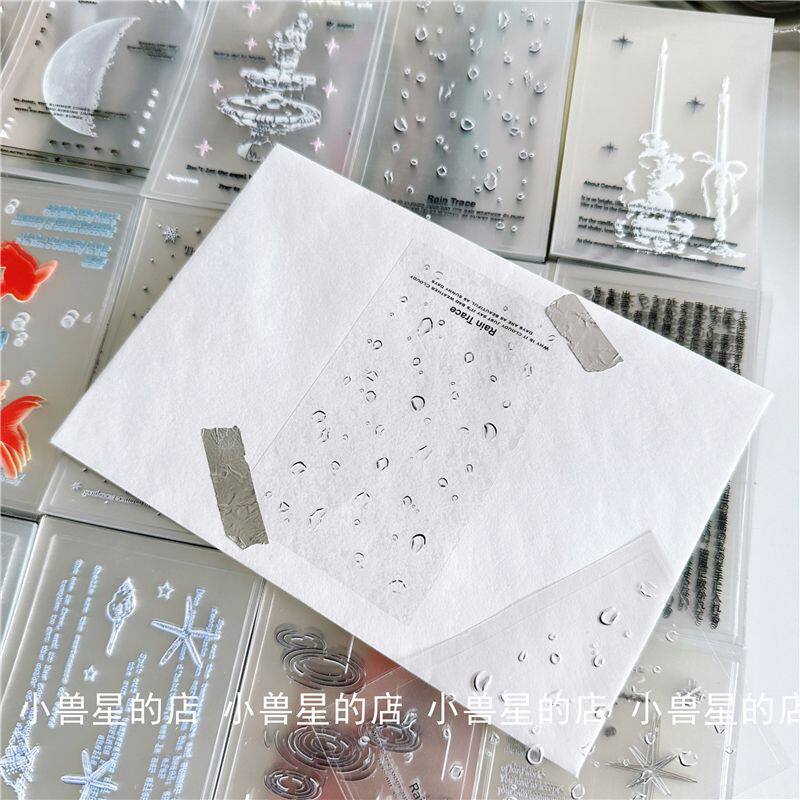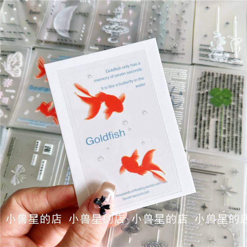 原创透明ins风手绘月亮雨滴金鱼双透封口贴纸四叶草开箱打包 粘贴