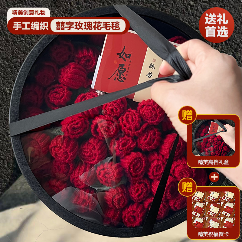新婚礼物结婚订婚送新娘玫瑰花毯子成品花束毛毯百喜毯送新人婚礼