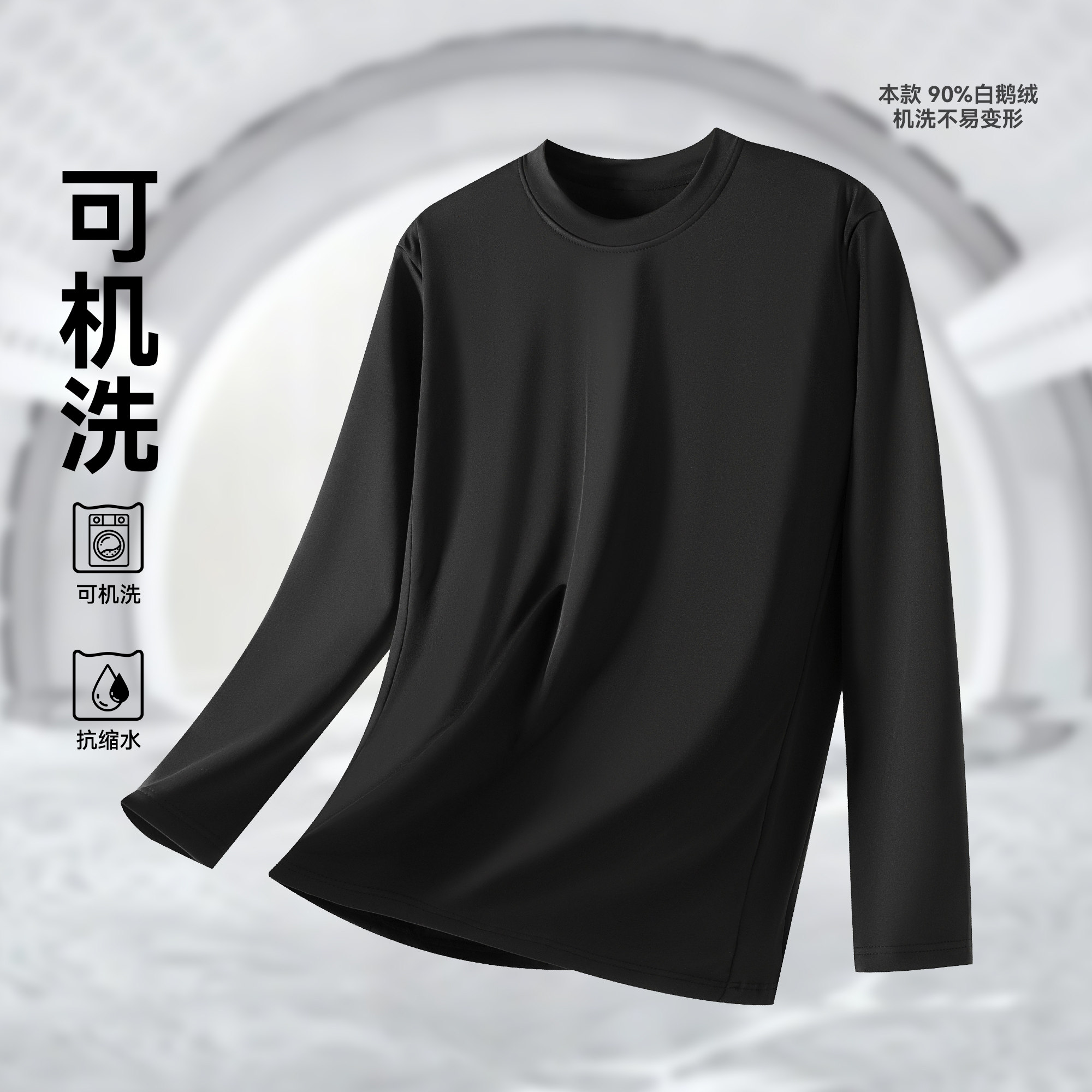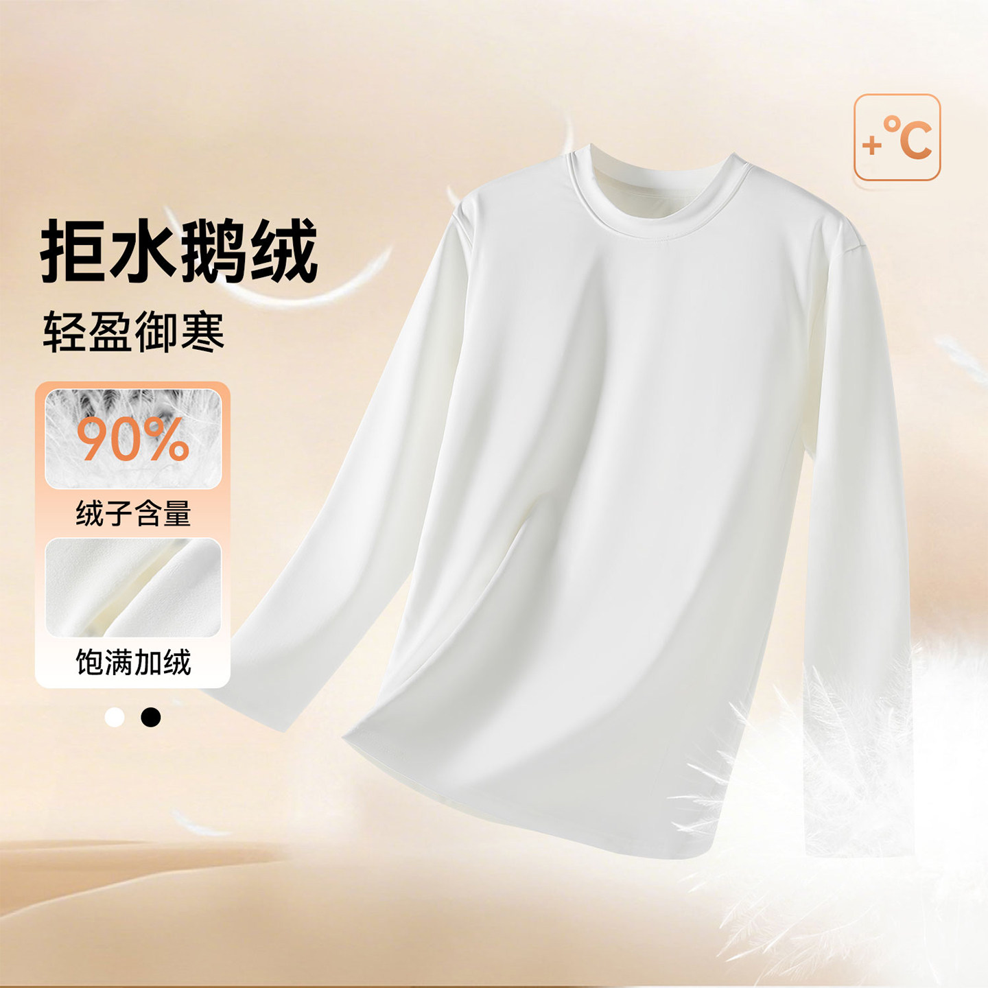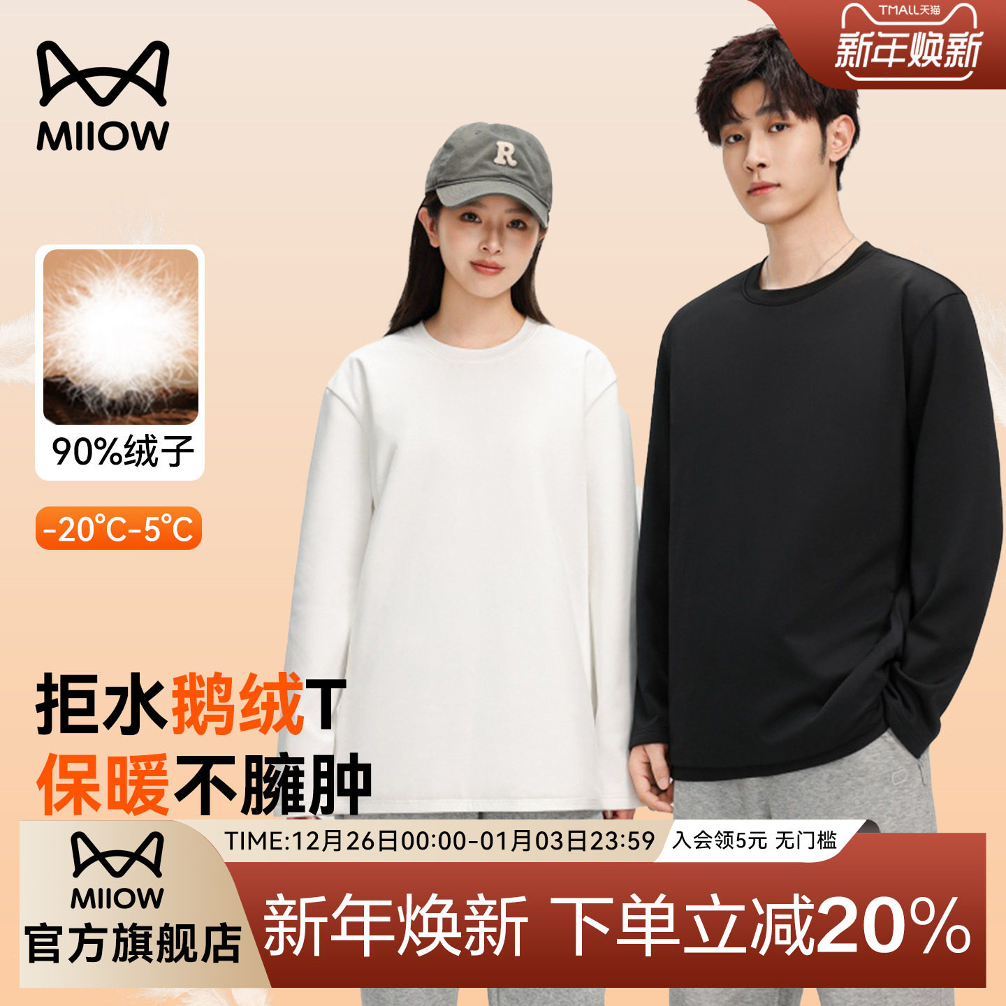 猫人羽绒T恤情侣款2025冬季新款加厚保暖小白t打底衫男士鹅绒上衣