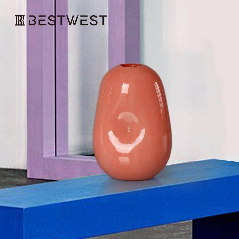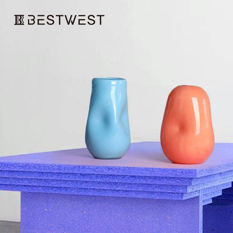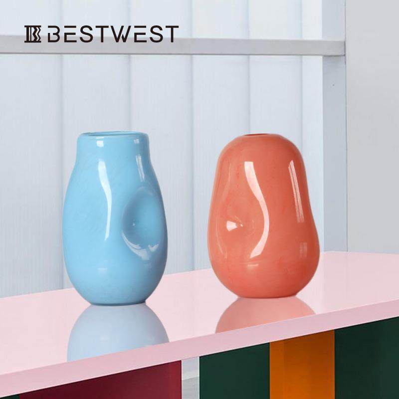 Bestwest彩色春笋不规则按坑水培玻璃花瓶摆件家居软装饰品花器