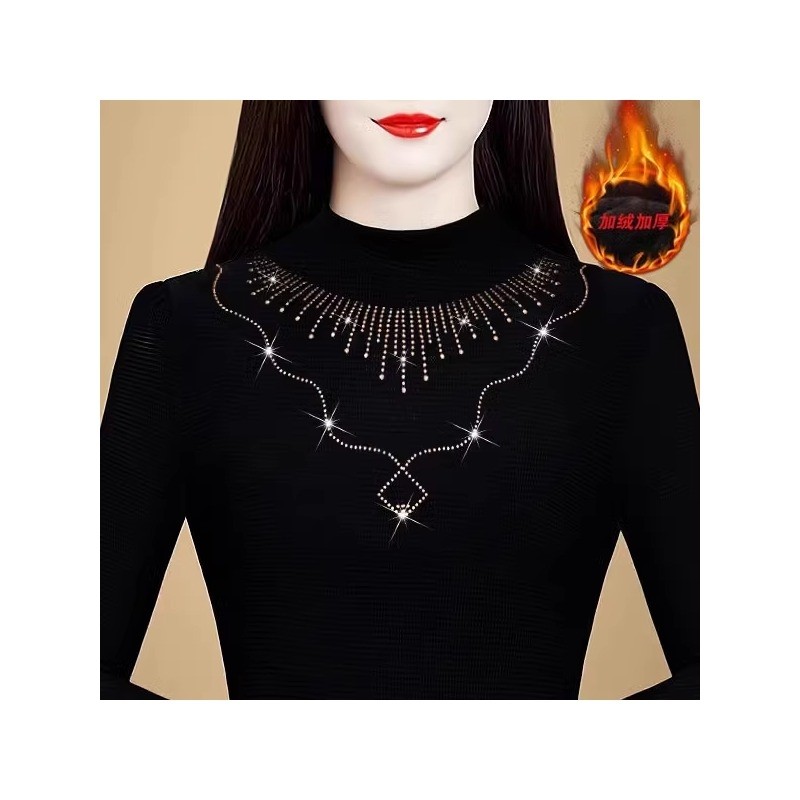 加绒加厚打底衫女内搭秋冬洋气上衣妈妈款长袖半高领红色黑色紫色