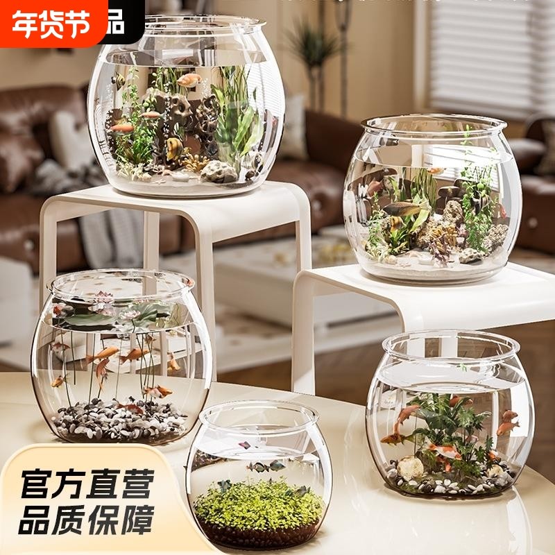 鱼缸圆形防玻璃耐摔客厅办公室养金鱼绿植观赏小型造景斗鱼生态缸
