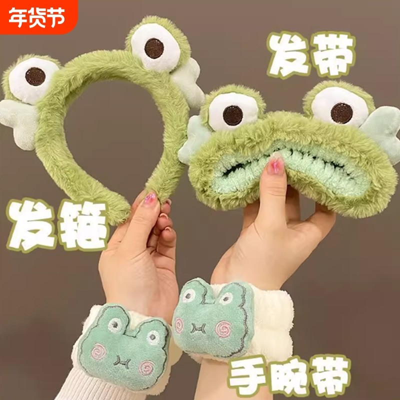 可爱小青蛙毛绒发箍女秋冬洗脸头箍束发带2025新款手腕带发捆头饰