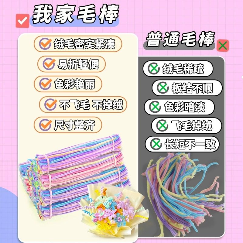 扭扭棒手工diy材料包编织花束手提儿童毛根制作毛绒摆件特密全套
