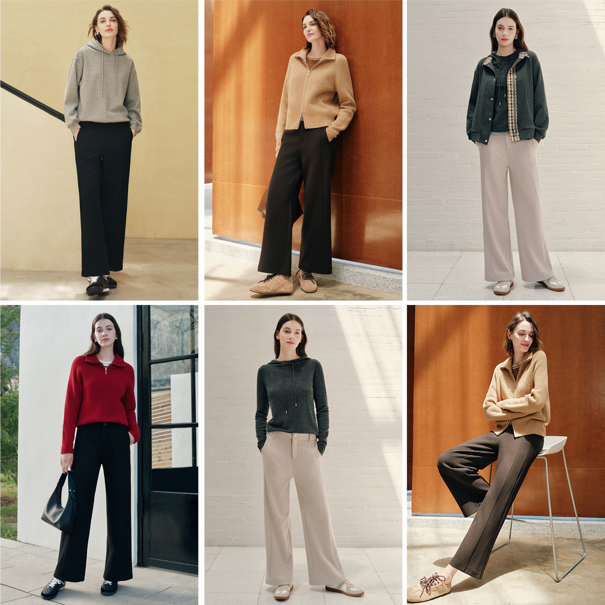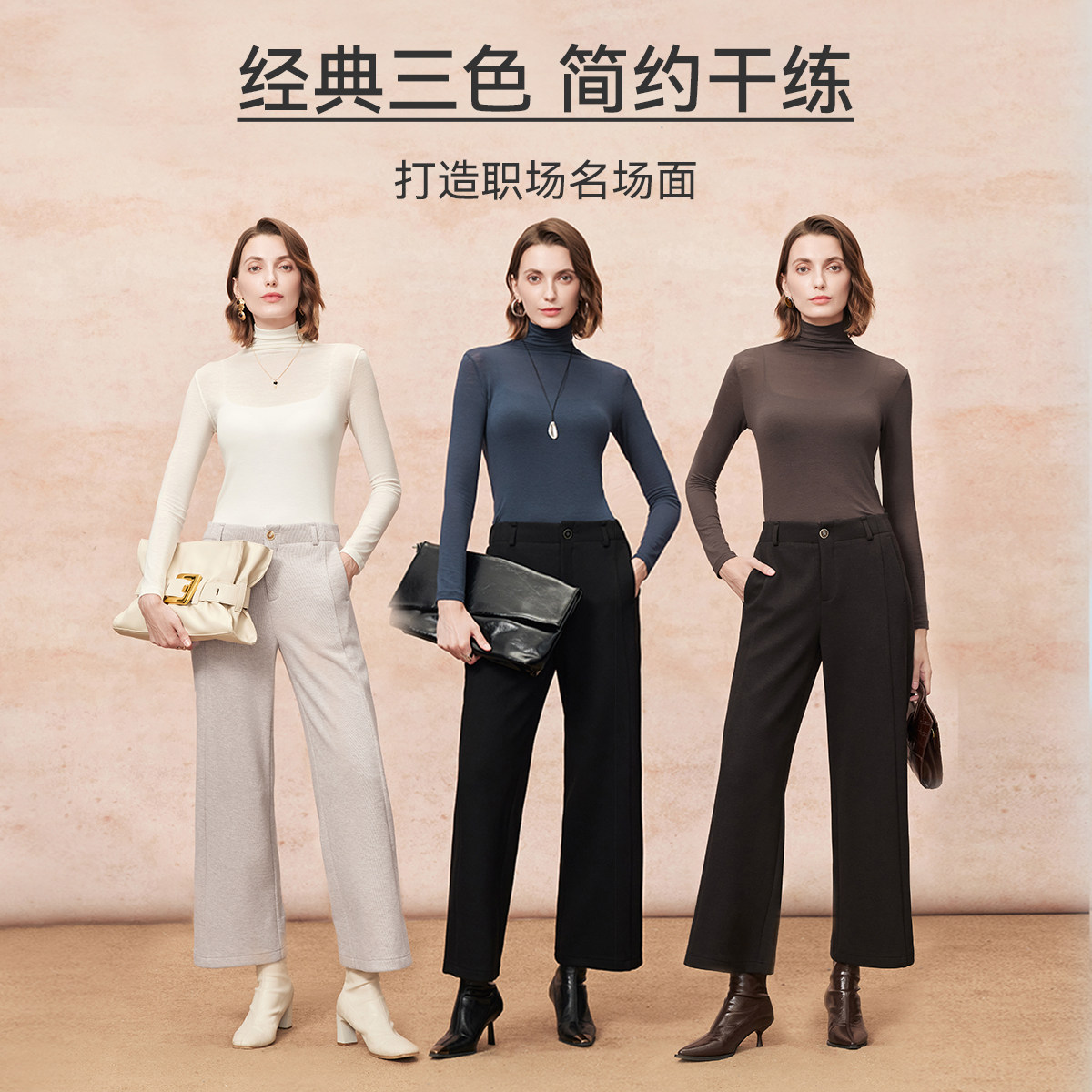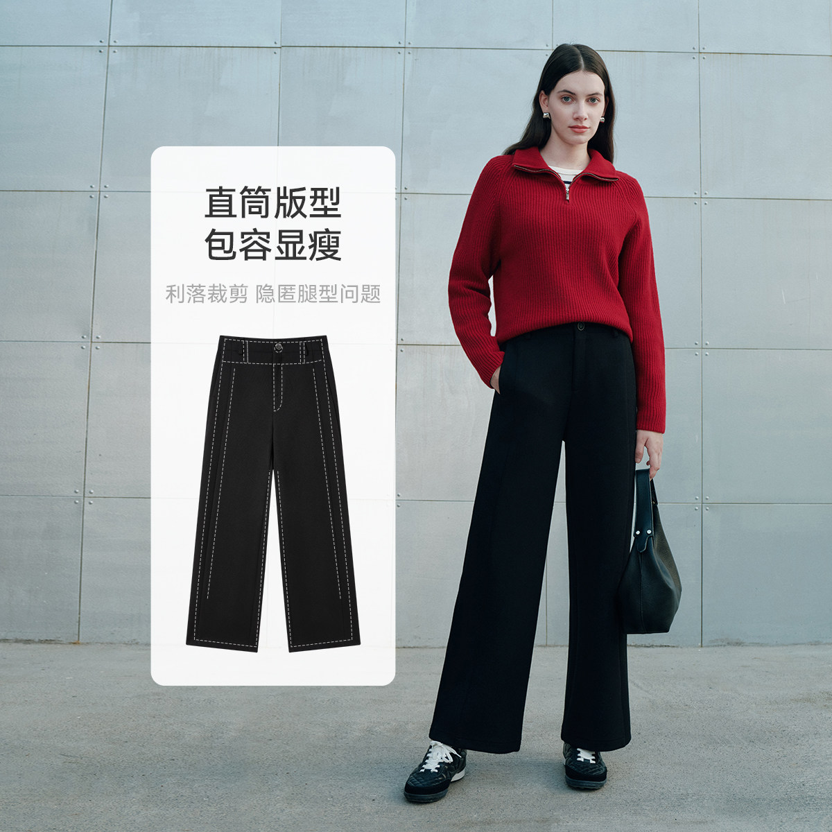 FINITY菲妮迪休闲裤2025年冬季新款加绒羊毛直筒气质通勤长裤女