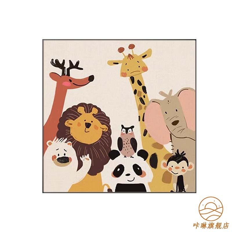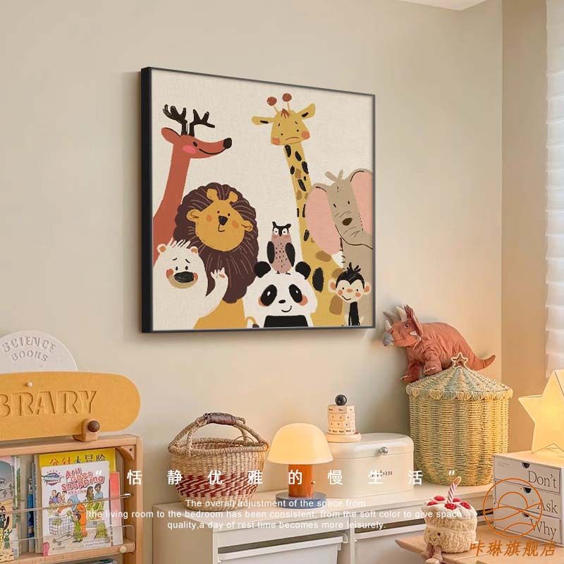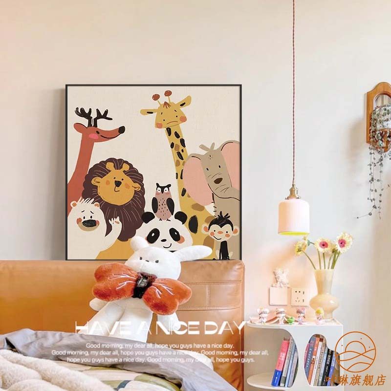 卡通治愈系动物儿童房温馨装饰画高级感男孩女孩卧室床头挂画客厅