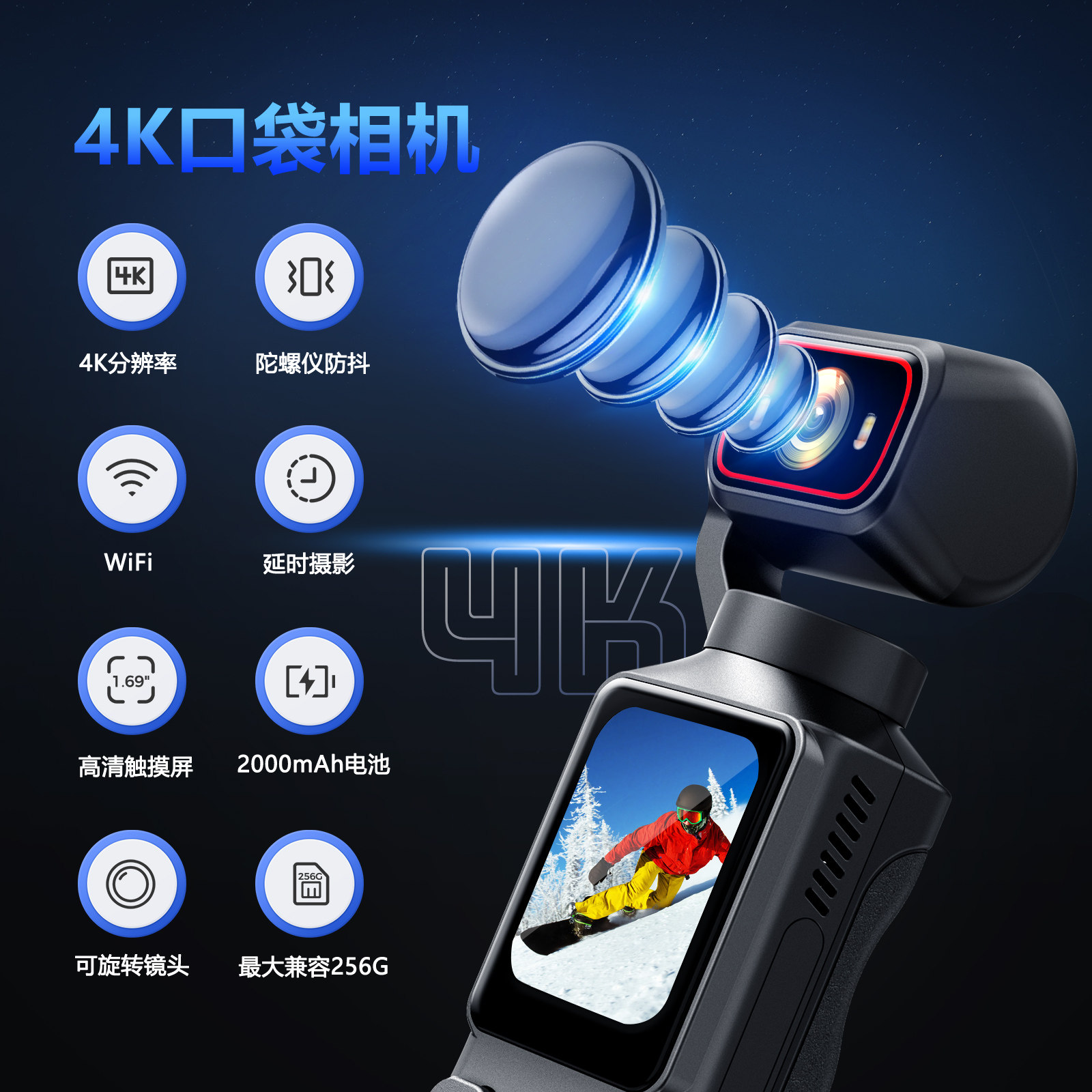 vlog防抖防水4K运动相机摩托车行车记录仪摄像拇指360全景Pocket3