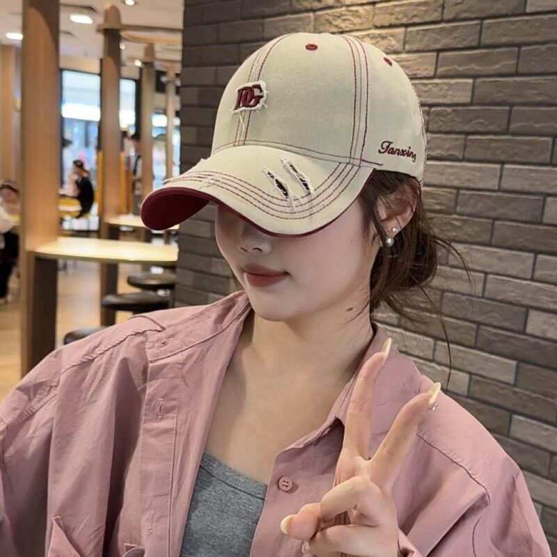 美式复古硬顶帽子女士春秋新款街头棒球帽男字母破洞鸭舌帽显脸小