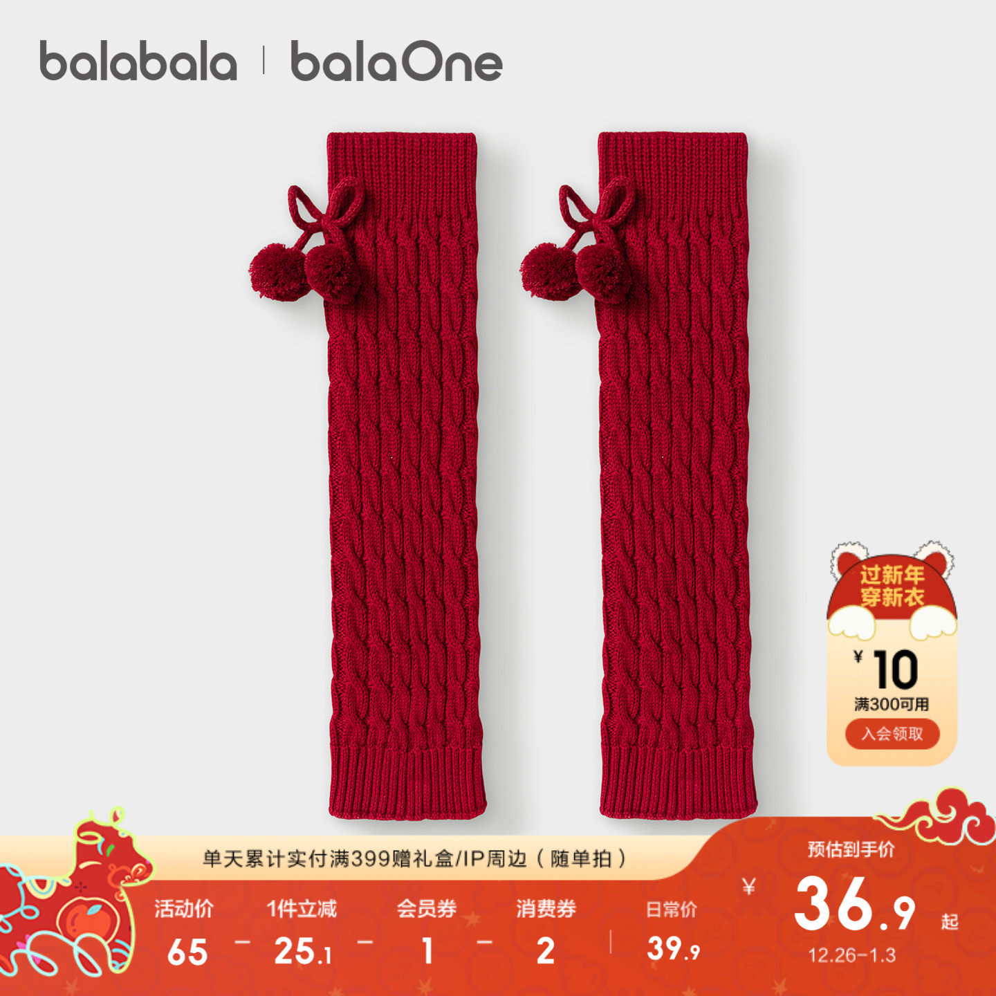 【balaOne】巴拉巴拉儿童袜子春秋女袜套含羊毛堆堆袜套绞花甜美