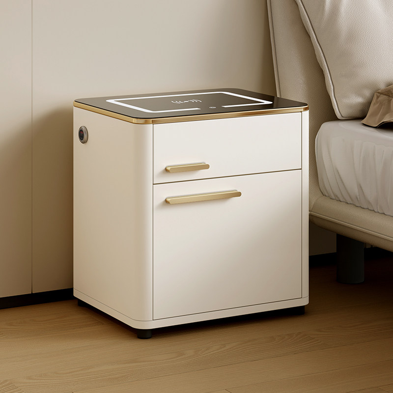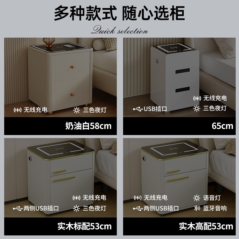 奶油风智能床头柜现代简约轻奢时尚实木床边柜卧室落地极简大容量储物柜多功能无线充电2025新款带灯收纳柜