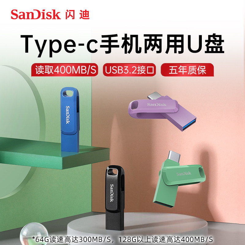 闪迪typec手机u盘128g电脑两用u盘高速手机ipad扩容加密优盘128g