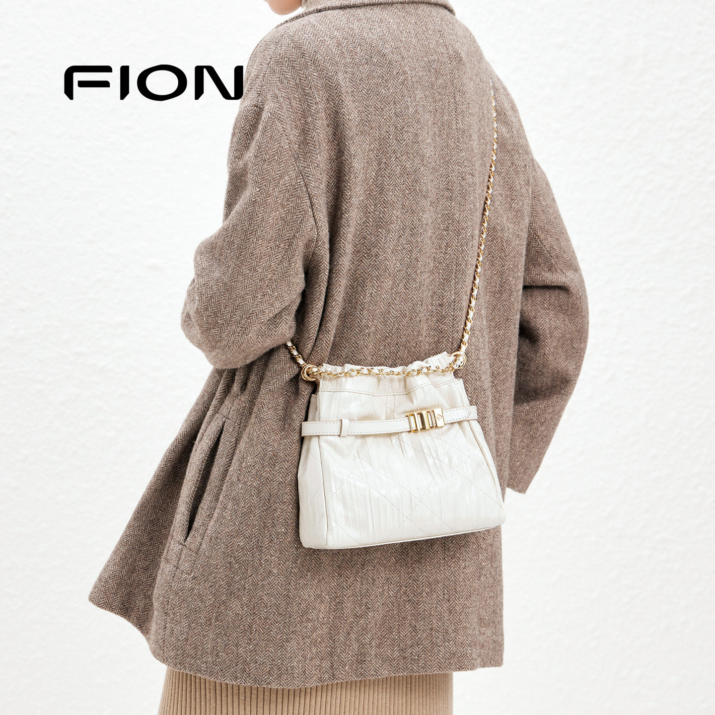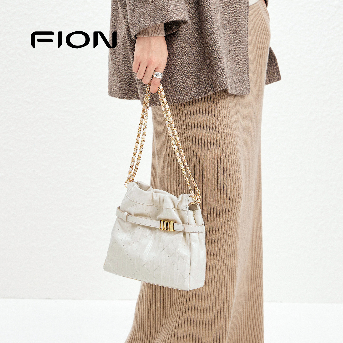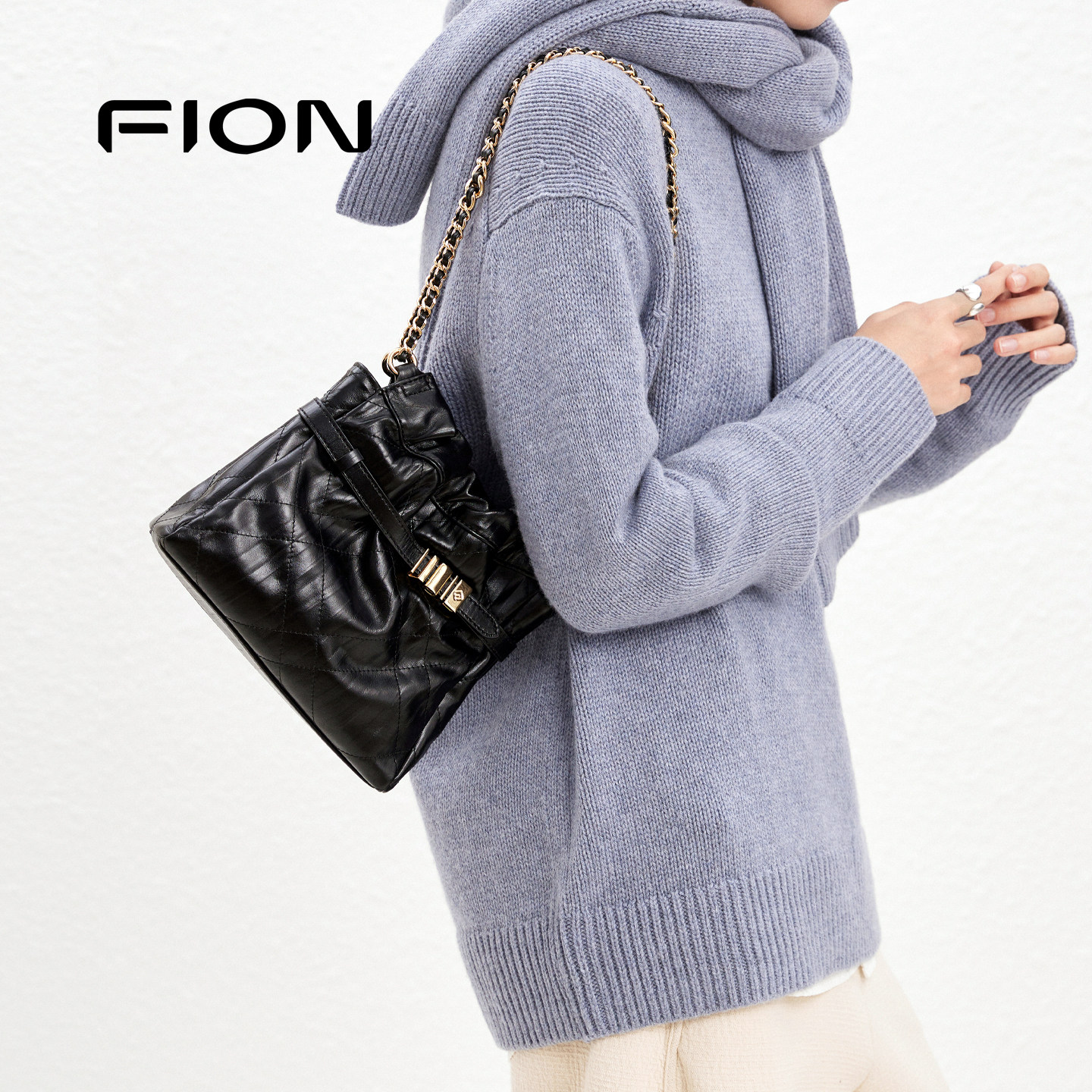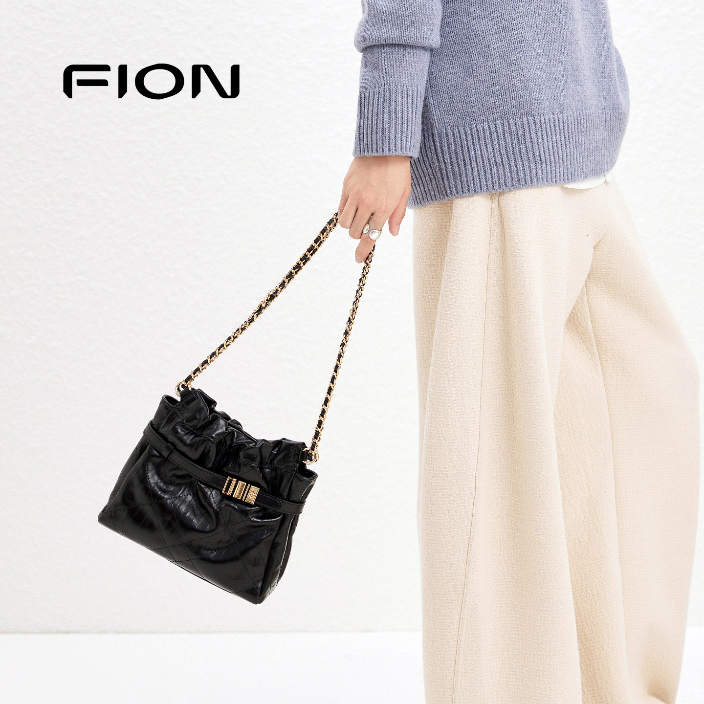 Fion/菲安妮音符水桶包秋冬链条流浪包时尚斜挎包女潮款单肩包包