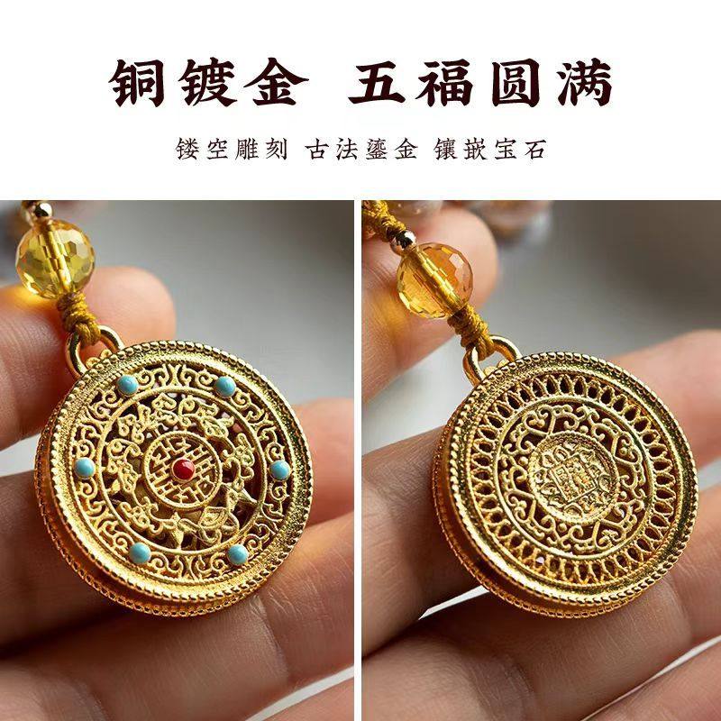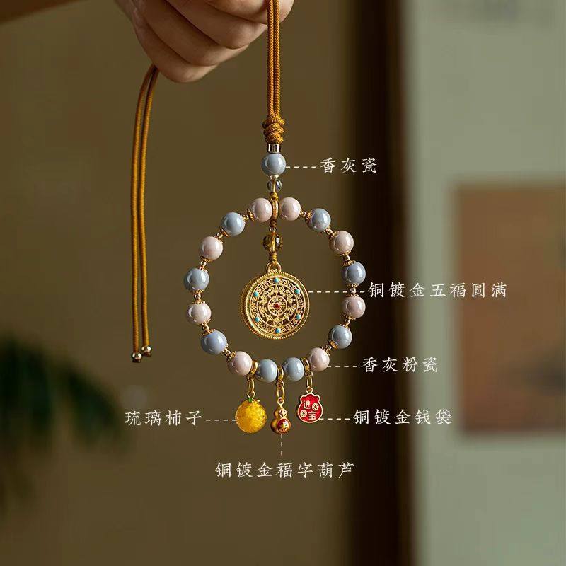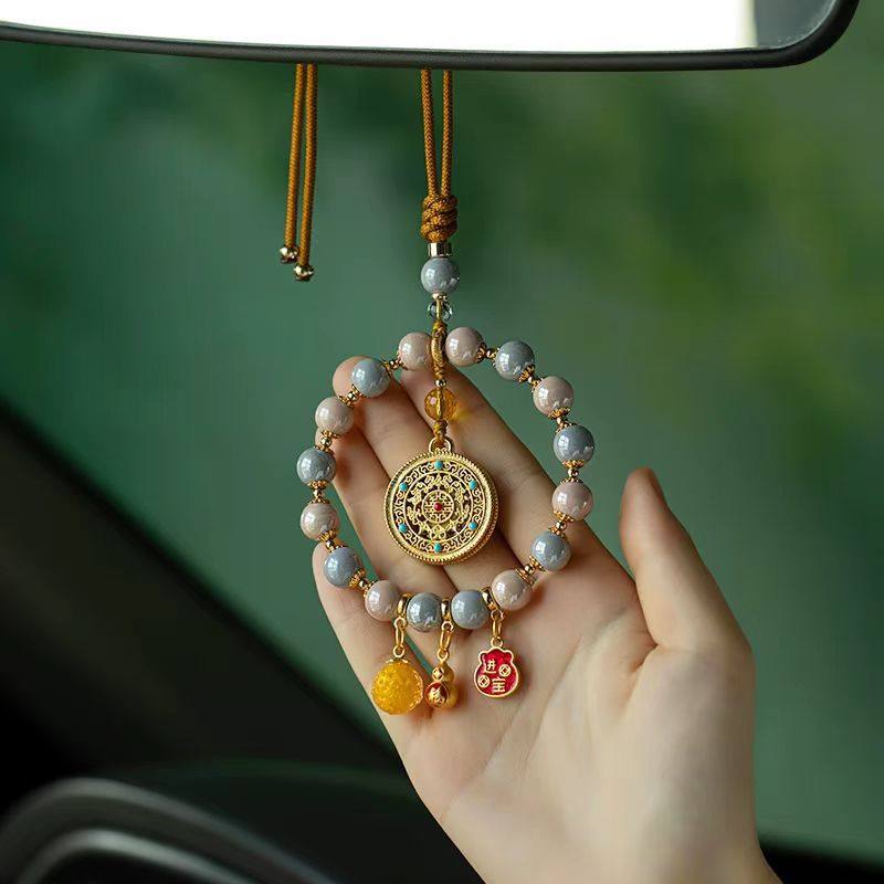 轻奢高档五福圆满汽车挂件香灰瓷车内吊饰平安车载后视镜吊坠装饰