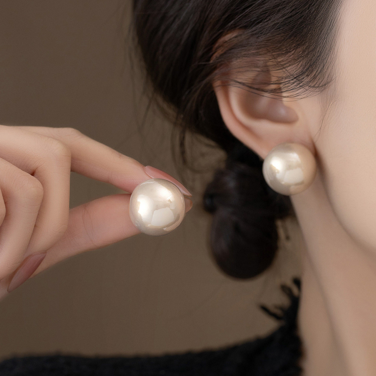 S999纯银针极简咬口仿珍珠耳钉2026新款爆款耳环气质简约百搭耳饰
