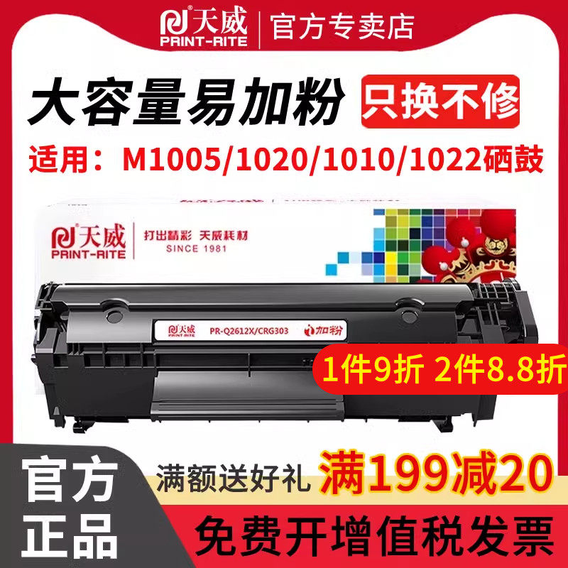 天威适用惠普Q2612A硒鼓HP12A HP1020易加粉HP1005 HP1020 plus HP1010 HP1018 m1005mfp打印机墨盒1005硒鼓
