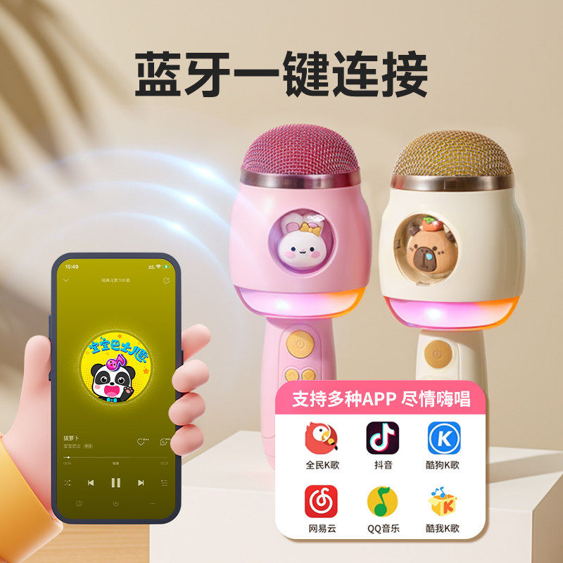 乐乐鱼儿童话筒麦克风卡拉ok唱歌音响一体机小女孩2宝宝3早教玩具