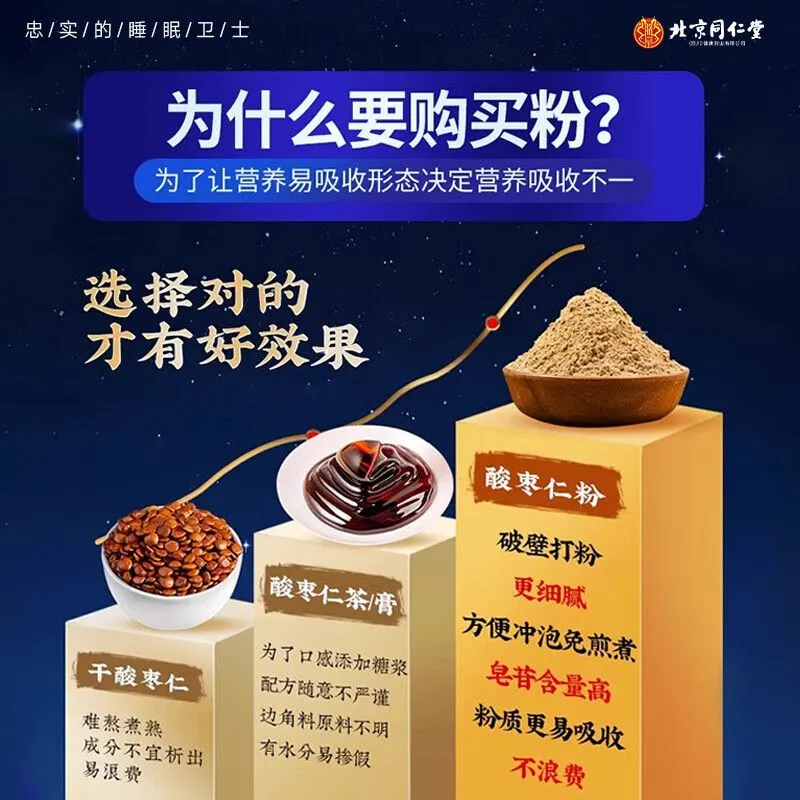 北京同仁堂正宗炒熟酸枣仁粉官方旗舰店酸枣仁茶助睡眠纯粉泡水用