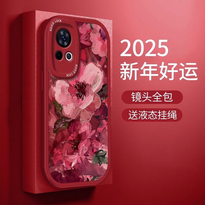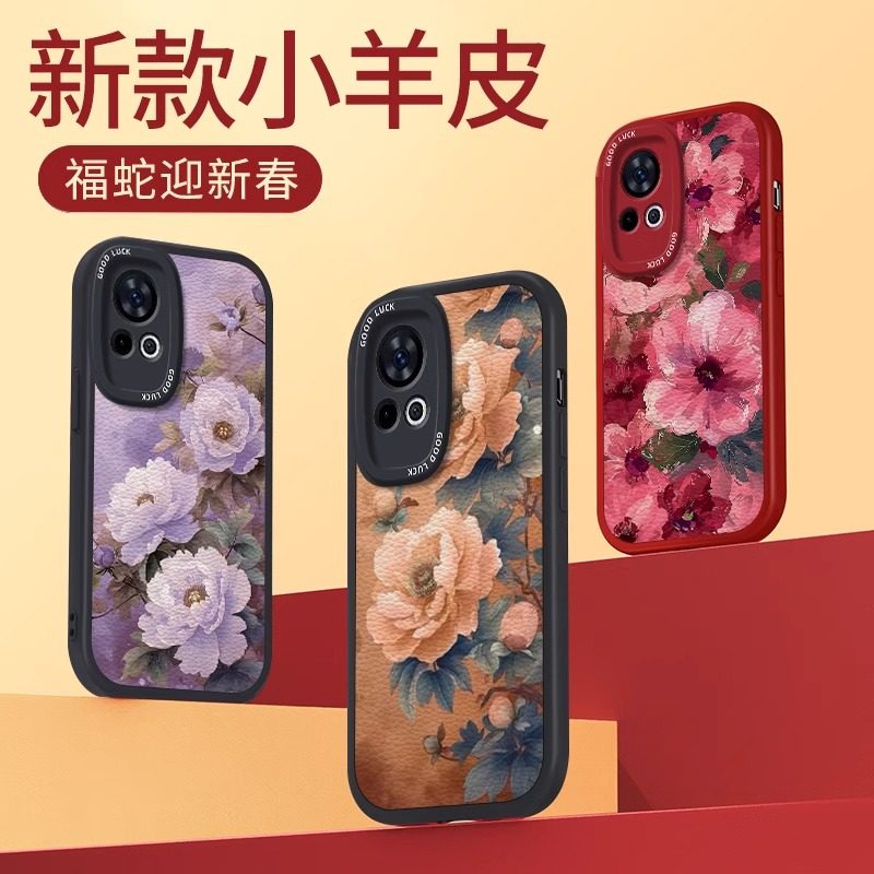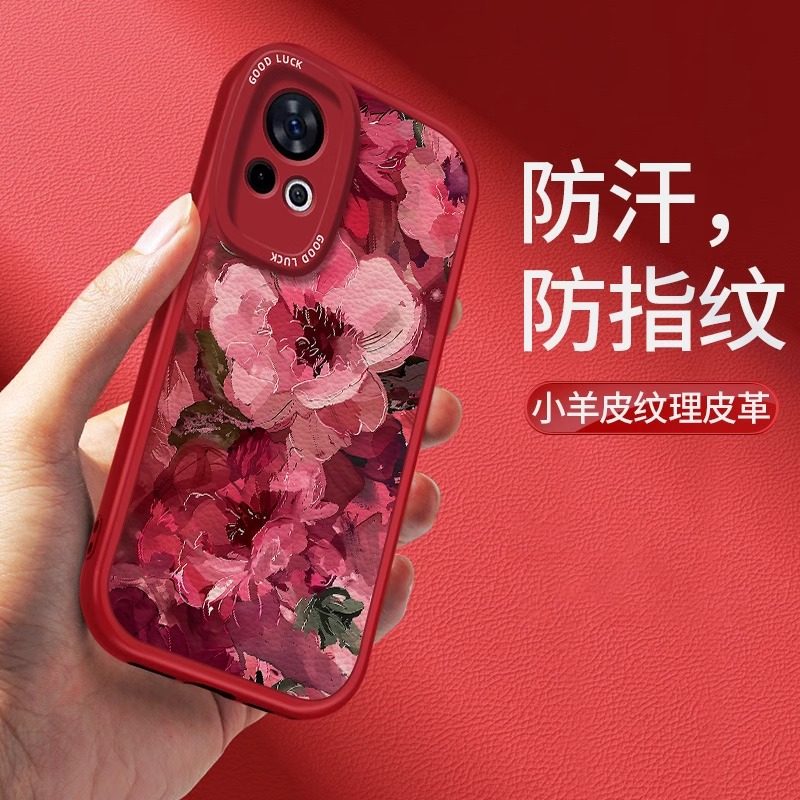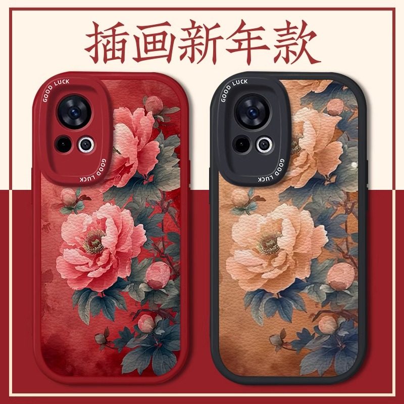 绽放红牡丹适用华为nova14手机壳新年款nova13活力板创意nova11红色12高级nova9女8潮10全包pro小羊皮防摔套