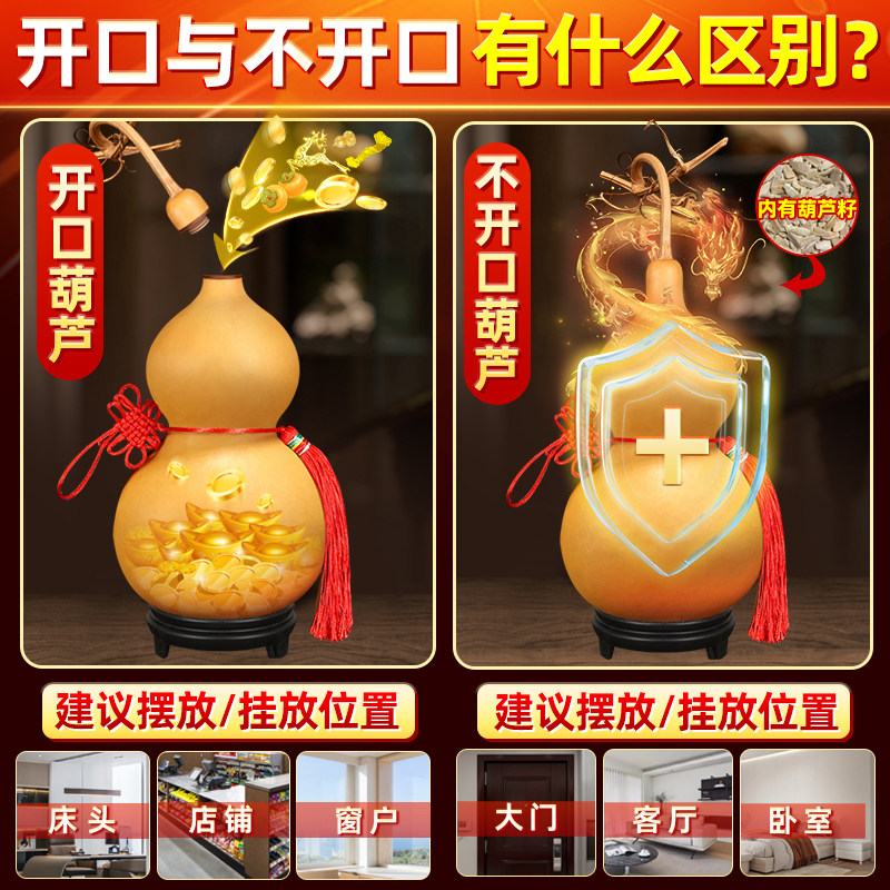 天然葫芦挂件真胡芦灸开口中国结吉祥门对门客厅玄关摆件大号文玩