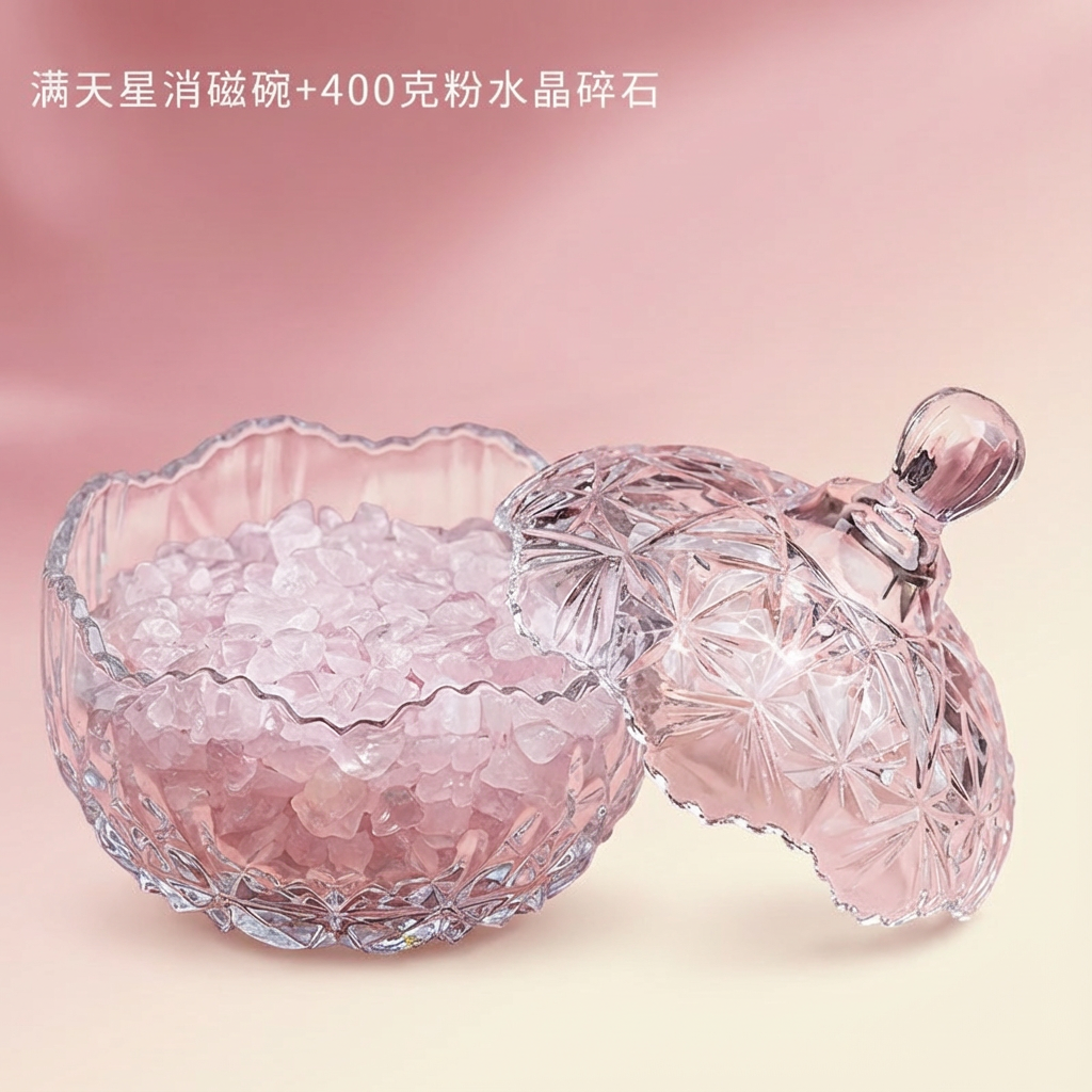 纯天然水晶消磁石套装蒙古包满天星水晶碎石消磁碗高级首饰收纳