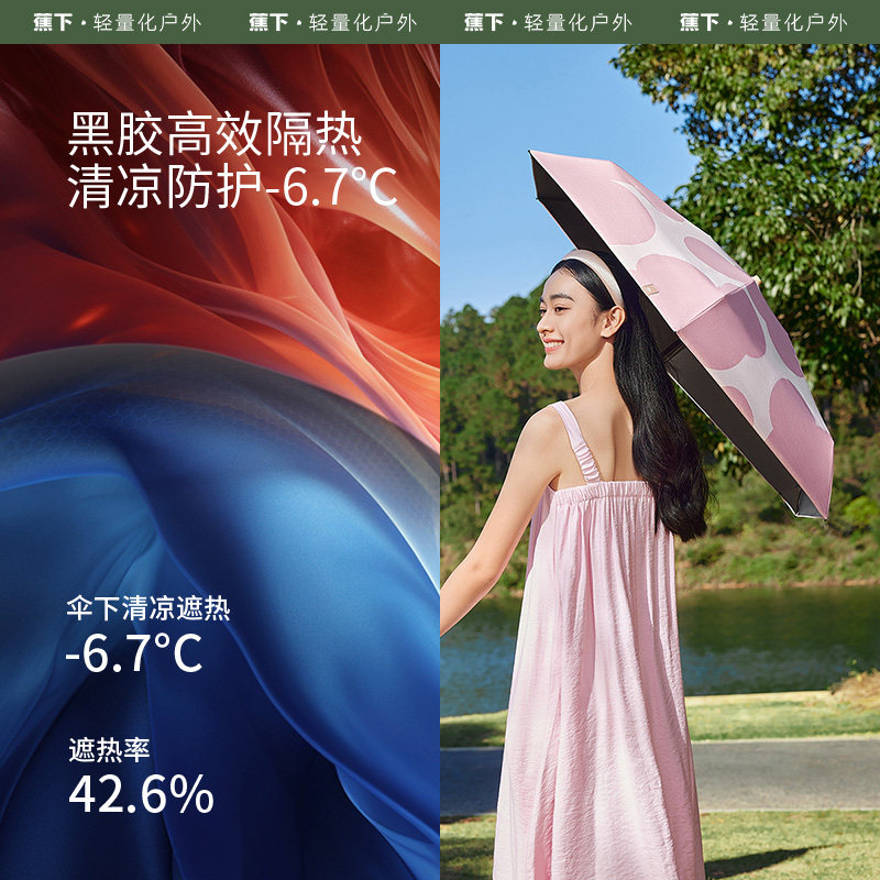 蕉下简约防晒伞BM656女轻巧晴雨两用防紫外五折太阳伞户外遮阳伞