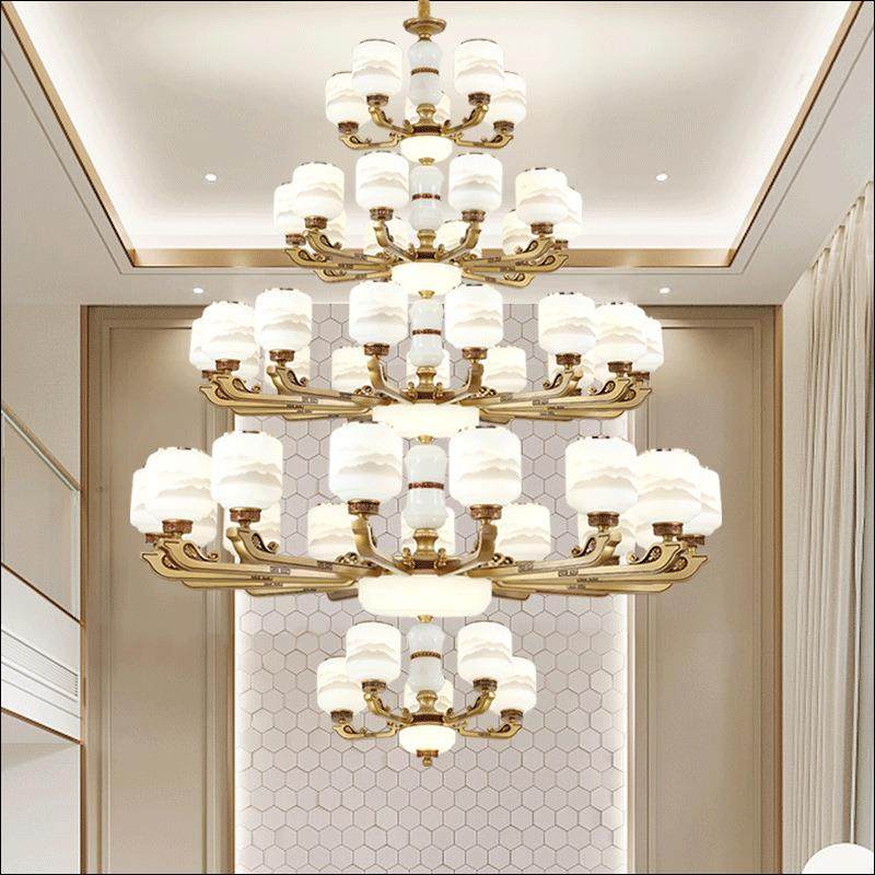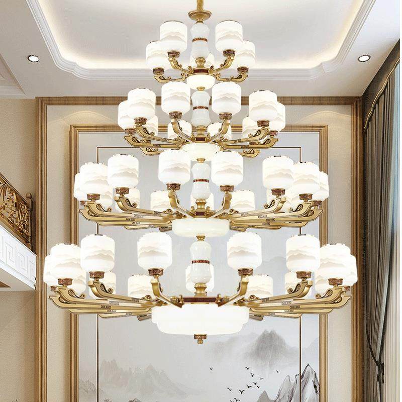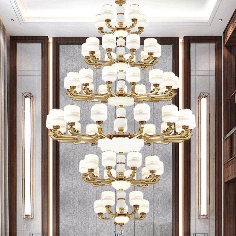 新中式大吊灯复式楼客厅餐厅别墅自建房中空楼梯家用灯具工厂