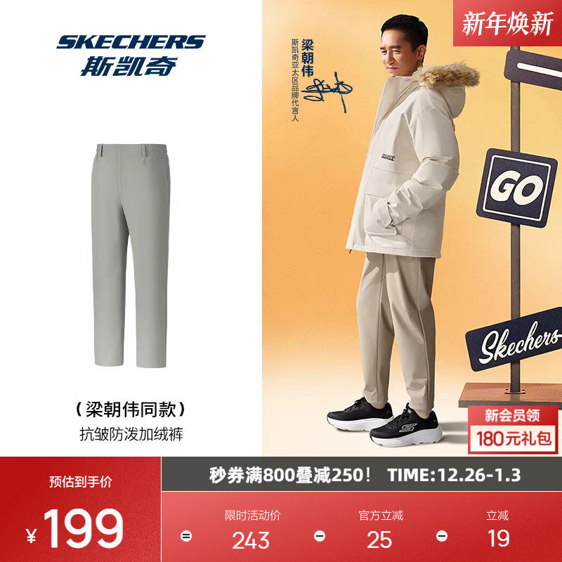 斯凯奇运动闪穿裤2025冬直筒梭织长裤加绒抗皱防泼水柔软舒适休闲