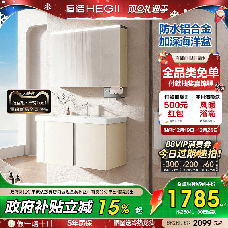 【直播补贴】恒洁蜂窝铝浴室柜组合陶瓷一体盆卫生间海洋盆洗漱台