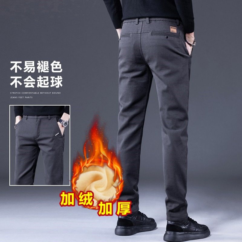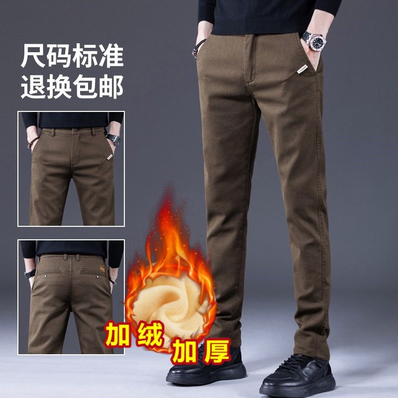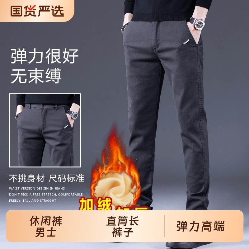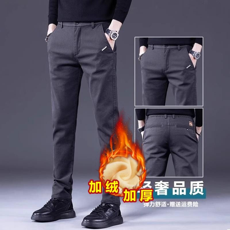罗蒙加绒加厚男士休闲裤商务休闲秋冬季新款弹力直筒西裤秋冬款
