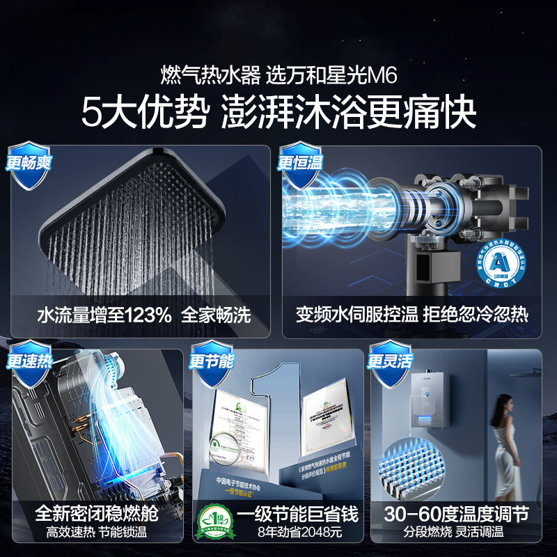 [政府补贴]万和爆款双伺服变频恒温一级节能天燃气热水器M6/P5/P6