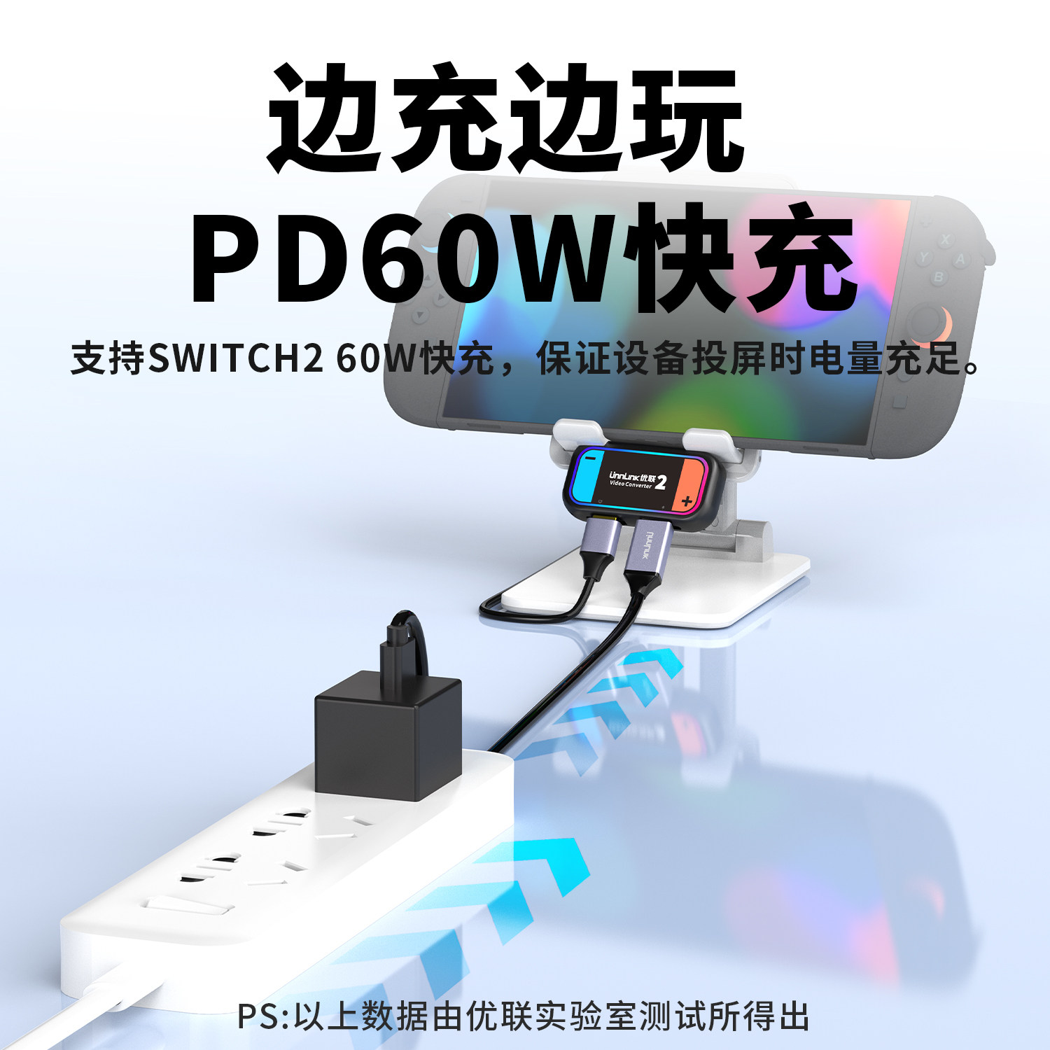 优联投屏线适用任天堂switch2投屏线投屏器便携底座转换器连接电视ns转接头显示HDMI游戏机oled充电线配件2代