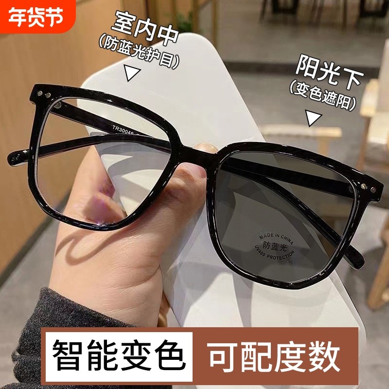 智能感光变色眼镜女近视可配度数超轻黑色高颜值素颜显瘦平光镜男